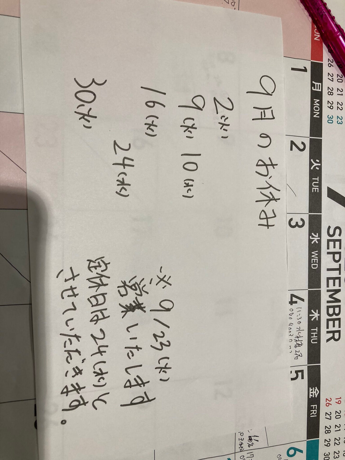 お休み的な話し♪^_^お休み的な話し♪^_^ とうとう来ました秋の端境期 思うようにお野菜が集まりません カボチャとナスに頑張ってもらいます笑 本日9/10は定休日になりますのでお休みとなります と、再来週9/23火曜日は祝日なので営業しよ […]